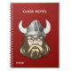 A cabeça de um viking decora a frente deste caderno espiral vermelho, com texto personalizado branco pronto para personalizar. Excelente para a escola.