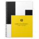 Um caderno profissional com um toque de cor em um padrão de bloco de cores simples, porém ousado, em amarelo de ônibus escolar, branco e preto, causa um impacto visual impressionante com apelo gráfico. Adequado para qualquer tipo de negócio, há um logotipo decorativo de amostra na frente que você pode substituir pelo seu logotipo ou deixar como está. Personalize com seu nome e título ou outro texto desejado.