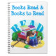 Acompanhe todos os livros que você quer ler e os livros que você leu em um único notebook. Amantes de livros de todas as idades vão adorar este divertido Livro Wagon Notebook com arte original pintada pelo ilustrador de livros infantis, ganhador de prêmios, Traci Van Wagoner com uma garota lendo um livro enquanto se inclina contra um cheio de livros e a palavra "LER" em azul texturizado atrás. Leia e escreva!