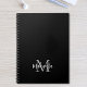 Este moderno notebook preto apresenta um monograma e um nome na tipografia de na moda. É facilmente personalizável.
