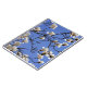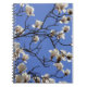Design apresenta uma bela imagem de flores brancas de magnólia em floração contra um fundo azul-céu.