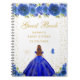 Este elegante e glamouroso e doce livro de hóspedes apresenta uma bela princesa com cabelo vermelho castanho e pele clara em um vestido azul real de bola. O texto combina o script manuscrito e as fontes sans serif modernas para um aspecto elegante e sofisticado. Os arranjos florais, borboletas e confete de ouro criam a mistura perfeita de rústicos e quicos. Gráficos por www.etsy.com/uk/shop/SunflowerDayLove