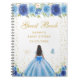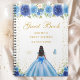 Este elegante e glamouroso e doce livro de convidados apresenta uma bela princesa com cabelo escuro e pele escura num vestido azul de bola. O texto combina o script manuscrito e as fontes sans serif modernas para um aspecto elegante e sofisticado. Os arranjos florais, borboletas e confete de ouro criam a mistura perfeita de rústicos e quicos. Gráficos por www.etsy.com/uk/shop/SunflowerDayLove