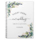 Uma cor branca de fundo. Decorados com eucalipto verde e folhagem de ouro. Adicione seus nomes e data de casamento. Nosso casamento é escrito com um moderno estilo escrito à mão.