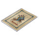 Uma representação de uma batalha entre uma ponte russa e um guerreiro asiático, ambos em cavalo. O texto cirílico (russo) que lê "Б о а т ы гьрs" (Bogatyr) também é exibido. Bogatyri são personagens heroicos encontrados em épicos eslavos medievais. São parecidos com os cavaleiros da literatura ocidental. A maioria das histórias sobre bogatyri gira em torno do tribunal de Vladimir I de Kiev (958-1015). Presume-se que alguns bogatyri sejam números históricos. Bogatyri protegeu a terra e as pessoas russas contra invasores, especialmente os Tatares. A alguns foram atribuídos poderes e força que eram quase divinos. Esta imagem é adaptada a partir de uma linha preta e branca ilustrando em "П о с т ь е о в с л а в н ы х б о г а т ы р я х з л а т о м г р а д е К и е в е и в е л и к о й н а п а с т и н а з е м л ю Р у с с к у ю Kiev, cidade de Ouro, e o flagelo Excelente da terra russa), por Tamara Probhiotal; publicado na URSS em 1974.