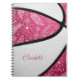 Este lindo notebook temático de basquete apresenta a imagem realista de uma basquete abstratamente sobredimensionada que recolheu painéis brancos e cor-de-rosa alternados com delicadas flores de rabisco desenhadas à mão, penas e paisagens padronizadas nos painéis cor-de-rosa do basquete - personalizar com o nome do atleta - por katz_d_zynes