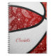 Este lindo notebook temático de basquete apresenta a imagem realista de uma basquete abstratamente sobredimensionada que recolheu painéis alternados de vermelho e branco com delicadas flores de rabisco desenhadas à mão, penas e paisagens padronizadas nos painéis vermelhos do basquete - personalizar com o nome do atleta - por katz_d_zynes