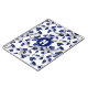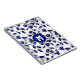 Este caderno espiral temático de futebol apresenta um padrão de bolas de futebol azuis e brancas dispostas aleatoriamente em tamanhos variados, viradas para todos os lados, em um fundo branco - o nome do jogador e monograma ou número da camisa são personalizáveis - por katz_d_zynes