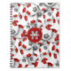 Este caderno espiral temático de futebol apresenta um padrão de bolas de futebol vermelhas, cinzas e brancas dispostas aleatoriamente em tamanhos variados, viradas para todos os lados, em um fundo branco - o nome do jogador e monograma ou número da camisa são personalizáveis - por katz_d_zynes