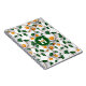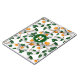 Este caderno espiral tema futebol apresenta um padrão de bolas de futebol verdes, laranja e brancas dispostas aleatoriamente em tamanhos variados viradas para todos os lados em um fundo branco - nome do jogador e monograma ou número da camisa são personalizáveis - por katz_d_zynes