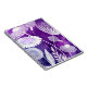 Large white flower art on a purple/violet wash background.