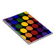 Linhas de bolinhas coloridas do arco-íris cobrir fundo preto. As linhas offset formam diagonais de cada cor: violeta, índigo, azul, verde, amarelo, laranja e vermelho. Imagem criada digitalmente. Copyright © 2011 Claire E. Skinner. Todos os direitos reservados.