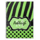 Este verde limão monograma, branco e faixas de zebra pretas e o notebook bolinhas tem caixas de modelo para você adicionar seu nome, monograma ou outro texto. Se precisar de ajuda para personalizar este item, envie um e-mail para niteowlstudio@gmail.com para obter assistência.