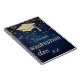 Elegante bolsa de formatura com brilho dourado e estrelas em fundo azul marinho.
