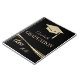 Elegante bolsa de graduação com purpurina dourada sobre fundo preto.