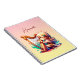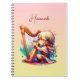 notebook personalizado. Adorável moça de desenho animado brincando de harpa.