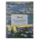 Um lindo caderno espiral com a pintura de Claude Monet Lírios d'água como fundo. Gráficos de um campo de texto bordado de tom dourado e gráficos adoráveis de uma fita ouro amarela, que parece uma fita, acabam com o colorido livro de convidados. O texto preto está pronto para personalizar o seu casamento. Os produtos de casamento correspondentes estão disponíveis, veja os links abaixo.