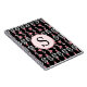 Um tema monográfico usando adoráveis cores contrastantes, este notebook é um dos tipos. Apresentando uma bela rosa e rosa branca em preto como fundo, há um gráfico circular rosa rosa no meio que faz o rótulo perfeito do monograma. Faça seu pedido hoje mesmo! Trabalho de arte floral em segundo plano: AMBilustrações http://www.etsy.com/shop/AMBillustrations/