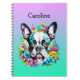 Caderno Espiral Boston Terrier cercado por flores personalizadas