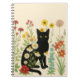 Caderno Espiral Botanical Nature – Black Cat in Wildflower Garden