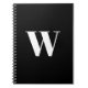 Caderno Espiral Branco preto personalizado, elegante inicial