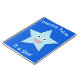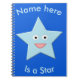Este incrível notebook personalizável apresenta uma imagem gráfica de uma estrela azul de cinco pontas com olhos enormes e um grande sorriso. Há texto personalizável que permite personalizar este design com o nome do destinatário e uma mensagem especial de sua escolha.