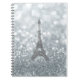 Caderno Espiral Brilho Prateado Brilho Paris Torre Eiffel Glam
