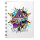 Uma bela e colorida ilustração do terceiro olho, aranhas, velas do crânio, cristais, garrafa de poção, e velas em uma teia de aranha.Presente brutal super-bonito. presente de excelente para a criança de flores e bruxas, leitores de cartas de tarô e amantes de cartas de tarot.