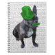 Caderno Espiral Buldogue francês com chapéu verde e bigode