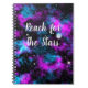 Este notebook apresenta uma imagem de uma cena espacial com uma galáxia roxa e azul e uma citação motivacional Reach for the Stars. Faz um presente excelente para um estudante ou alguém que precisa de um pouco de motivação e ama ciência e espaço.