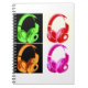 Caderno Espiral Cabeça de Pop de Arte com Fone de Ouvido de Quatro