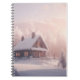 Caderno Espiral Cabina de madeira encantadora coberta por neve em