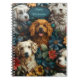 Caderno Espiral Cães e flores coloridas design