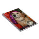 Este jornal caracteriza um filhote de cachorro do golden retriever vestido como um caixa de fortuna, olhando em uma bola de cristal.