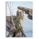 Uma fotografia de um sanduíche a dormir na borda de uma árvore caída, virada para uma baía. Há outra árvore caída no primeiro plano que se alinha perfeitamente para criar a ilusão de um telhado para o passarinho marrom, para que ele pareça ser embalado. Copyright © 2017 Kimberly J Tilley.