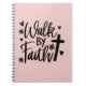 Este notebook é perfeito para capturar seus pensamentos, sonhos e inspirações. Este notebook exclusivo apresenta um cobrir rosa pastel suave, enfeitado com a inspiradora frase "Caminhar por Fé" em uma fonte preta e bonita. Acentuado com corações negros divertidos, flores e uma cruz, esta design seria apreciada por vários. Ideal para jornalismo, tomada de nota, ou como um presente pensativo para essa pessoa de fé.