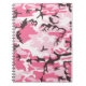 Notebook com Camuflagem Rosa. Consiste em 4 cores impressas em um padrão de encravamento.