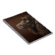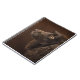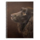 Design apresenta um retrato fotográfico de um cão com cabelo castanho sobre fundo castanho escuro.