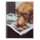 Caderno Espiral Cão esperto com vidros em um livro