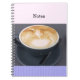 Um notebook com um cappuccino delicioso apresentado na frente. Anote suas anotações na sua próxima aula ou reunião com este notebook bonito na mão
