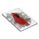 Este caderno caracteriza um cardeal vermelho brilhante. É verdadeiramente o rei de pássaros do quintal! Está empoleirado aqui em um trilho nevado que come sementes de girassol pretas do óleo quando a neve do inverno rodar em torno dele.