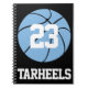 Carolina Blue Basball Student Name and Number Custom Spiral Notebook: Torna seus próprios notebooks em espiral especializados para equipes de basquete, jogadores e fãs com cores de equipe azul/azul-claro da Carolina. Personalize-os digitando no seu próprio texto (nome do jogador, nome do time, mascote, slogan, nome da escola, etc.) no final, e um número de camisa ou letras/iniciais no meio da basquete. Você também pode clicar no botão [Personalizar] e alterar a cor do plano de fundo (atualmente definida em preto). Estes fazem presentes fantásticos para jogadores de basquetebol!