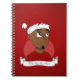 Design personalizado com uma ilustração de feliz sorriso de um homem afro-americano com o chapéu de Papai Noel; com texto editável modelo, design de Natal com fundo vermelho, por Radka Kavalcova