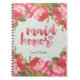 Caderno espiral do laço da madrinha de casamento branca e verde pálido do vintage com rosas cor-de-rosa e caligrafia. Personalizado.