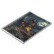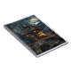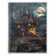 Um castelo de bruxa torta com lanternas de jack-o-o-acendem no escuro. A melhor escolha para o Halloween