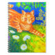 Notebook com pintura de animais de Louis Wain Cat Stalking (1860-1939). Um gato listrado de laranja anda num campo verde à noite. Flores brancas, roxas e vermelhas estão no primeiro plano. Um presente maravilhoso para amantes de gatos e arte inglesa.