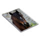 Uma fotografia agradável, próxima da cara de um cavalo marrom. Seus olhos com alma grandes estão olhando direitos no visor desta parte. O contexto parece ser um campo e a cor acentuada é um marrom em muitos dos produtos. É tão bonito, é certo fazer todo o amante e coletor do cavalo felizes receber este presente.