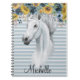 Caderno Espiral Cavalo de aguarela com nome de girassol personaliz