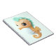 Caderno Espiral Cavalo-marinho-de-bébé-branca em Teal e Branco