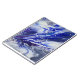 Soft whites blend effortlessly into deep ultramarine and indigo, while delicate clusters of “stars” drift across the design. The movement feels otherworldly, like watching galaxies stretch and swirl in slow motion.